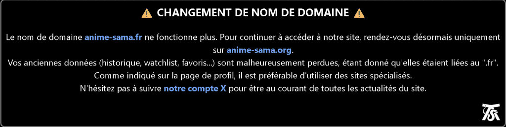 Nouvelle adresse : Anime Sama est disponible sur anime-sama.org